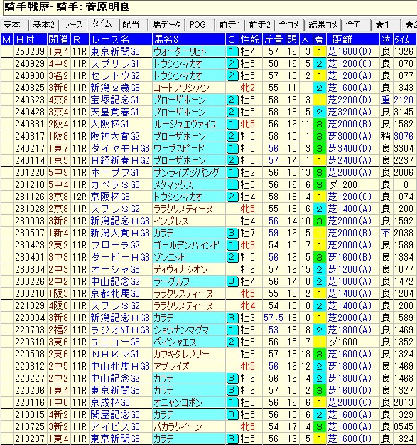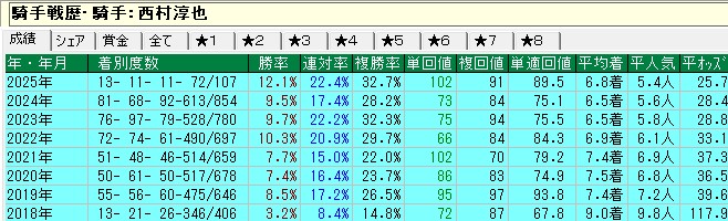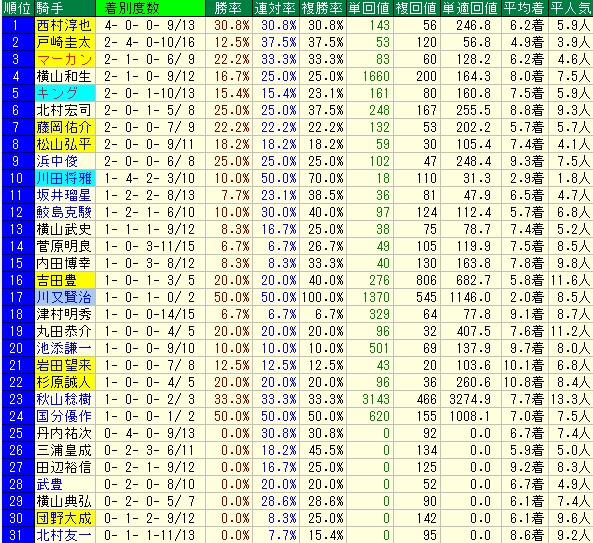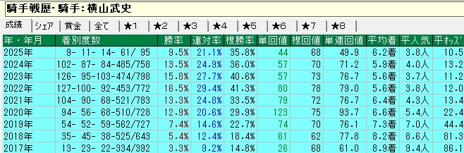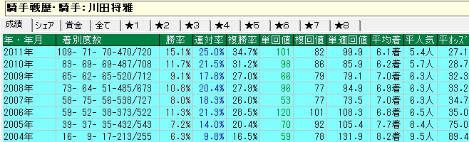 この手の数字を分析すれば、ガシマンや戸崎、川田がWIN5ではアテにならないことも一目瞭然。まあ川田に関してはいずれ調子を上げていくはずだ。