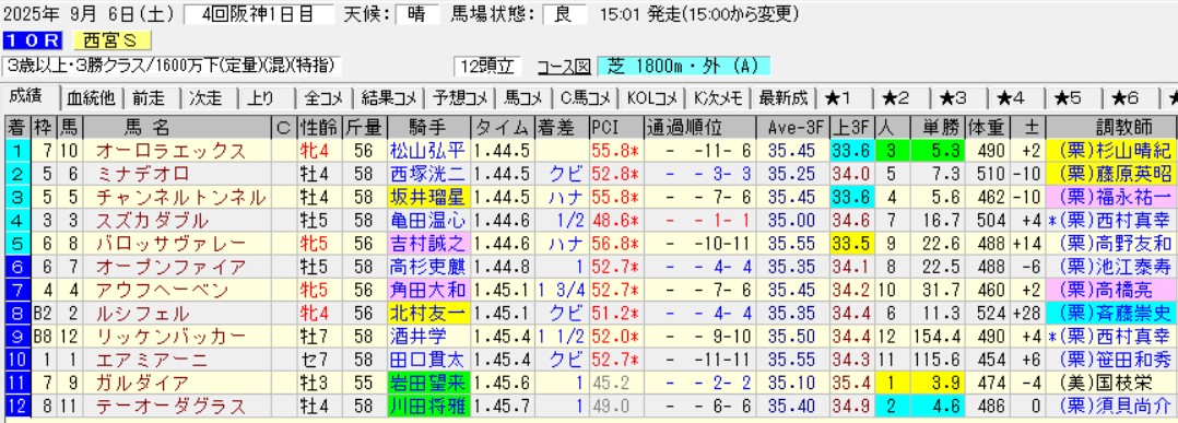 阪神の芝1800は外回りで直線も長く、開幕週でも土曜阪神の10R西宮S(3勝)でオーラルセックス(言いたいだけ)が差し切った。