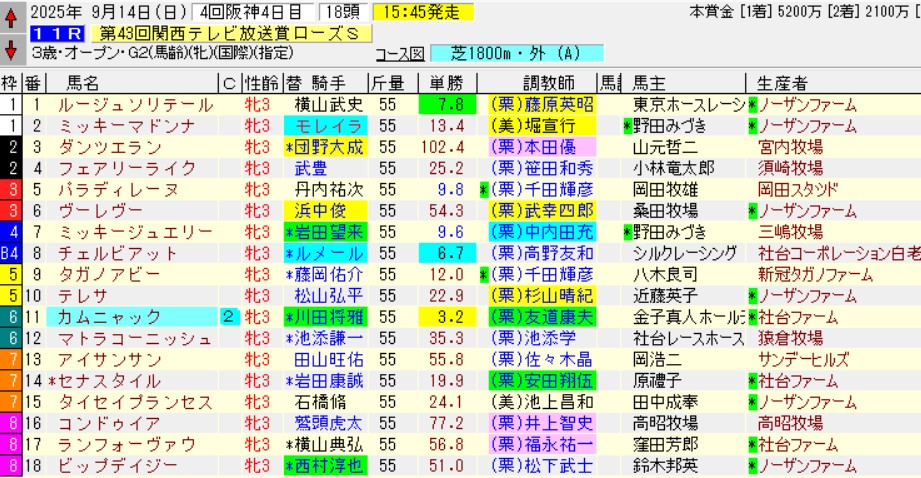 阪神11RローズS(G2)芝1800