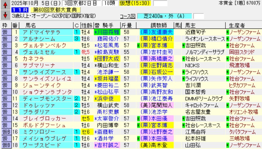 しかし、肝心の武豊は毎日王冠(G2)のサトノシャイニング、池添謙一はサンライズアースに騎乗するものの、こちらは馬の方が京都向きじゃない。