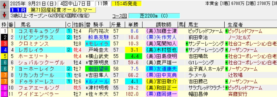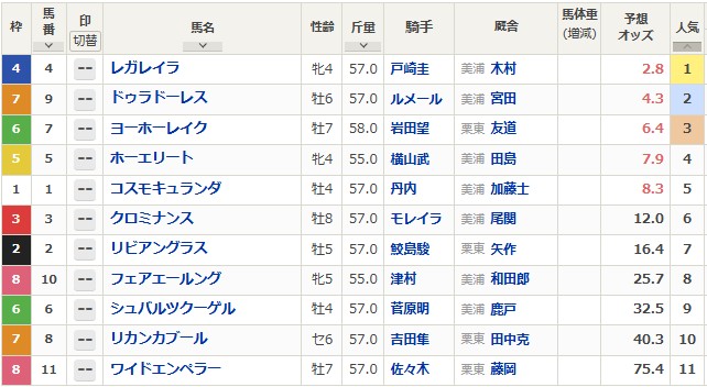 これじゃモレイラ神が買えないじゃねえか(笑)。まあ当日になればモレイラ人気で1頭くらい入れ替わりそうだけどね。