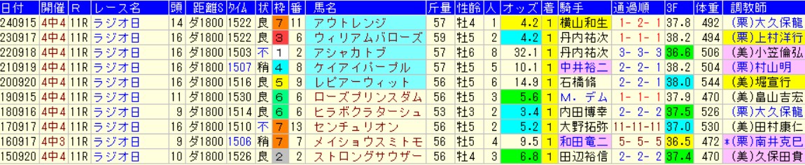 過去10年の結果はこちら。昨年は14番人気ギャラクシーナイトが大穴を出して大波乱。一樹君は上手いからね。基本的に荒れやすい条件だ。