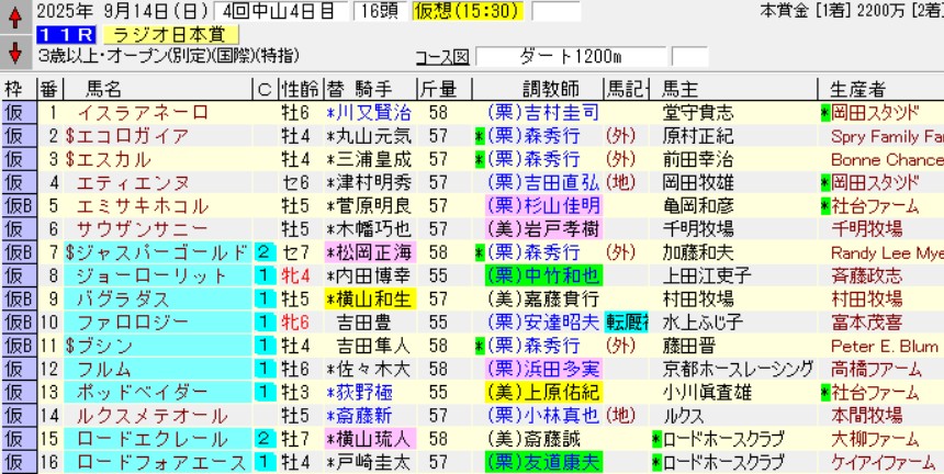 過去10年に満たないサンプル。今年も芝1600m条件で行われる模様。