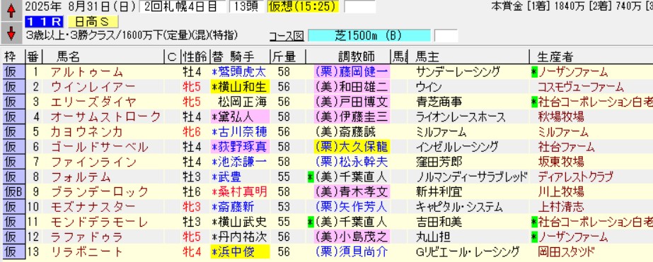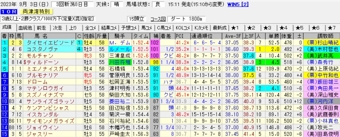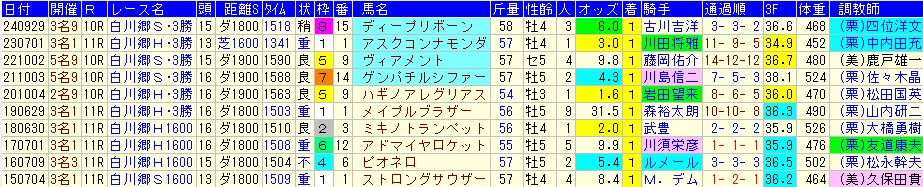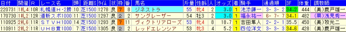 前走1着 3- 2- 2- 13/ 20 15.0%