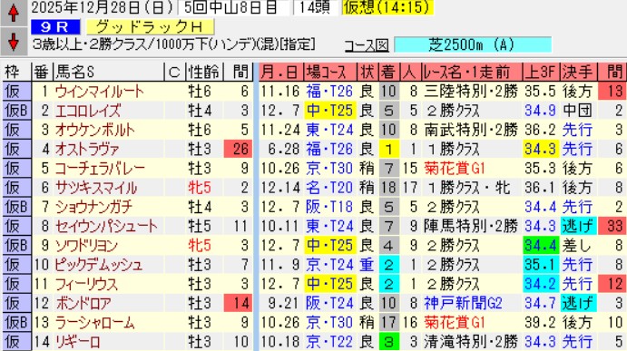 中山09Rグッドラックハンデ(2勝)芝2500
