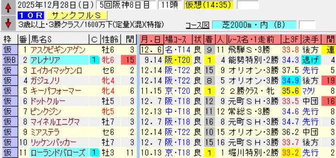 阪神10RサンクフルS(3勝)芝2000