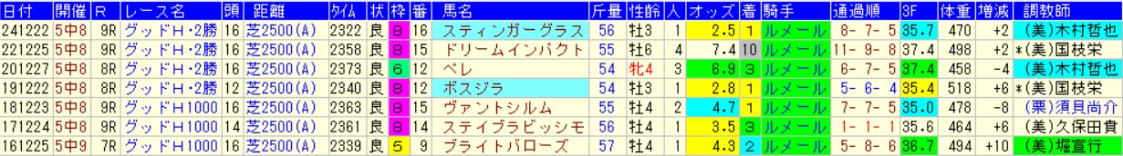 有馬記念で内枠が歓迎される割に、同じ芝2500mのグッドラックハンデは外枠の方が優勢という矛盾を抱えている。