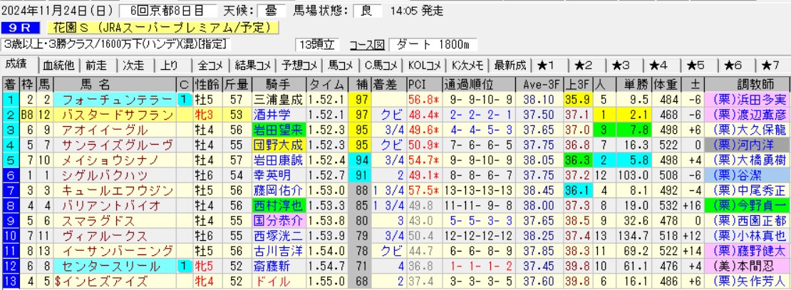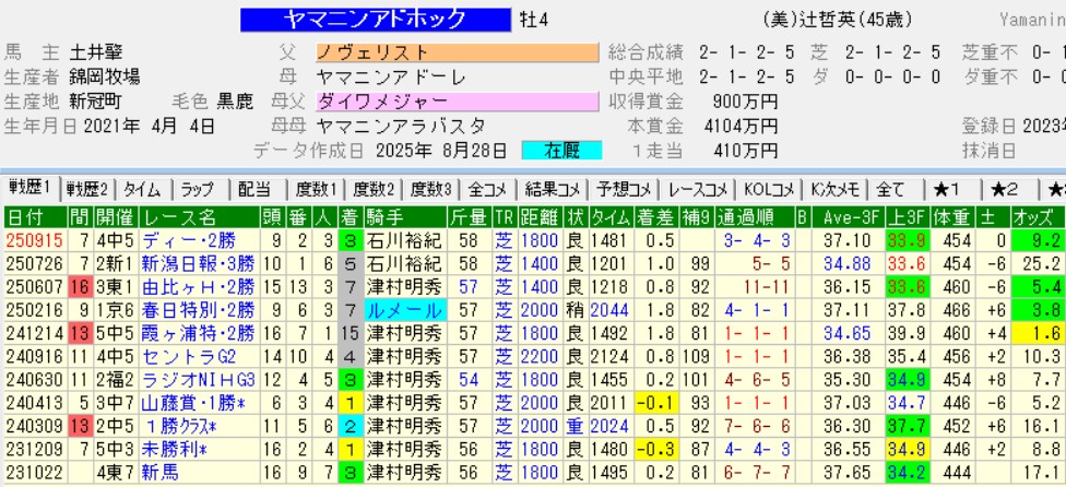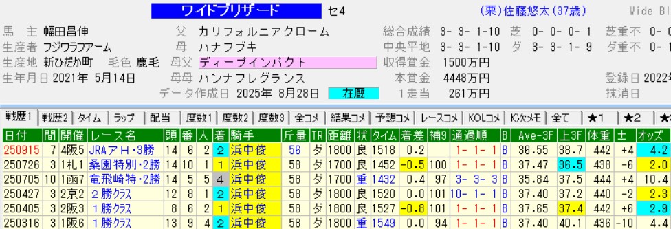 ちなみにtargetで確認できるPCI値(50が平均)によると1勝クラスのときは「47.7」、前走は「51.1」で常識の範囲。ところが今回はなんとなんと「38.2」だもの。いっつも言われているけど浜中俊の体内時計はとっくの昔から狂っている、いやぶっ壊れている。