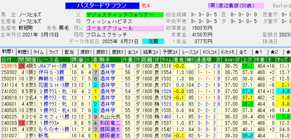 レースの話に戻ると、バスタードサフランって5番人気になるような馬だっけ?という想いの方が強い。