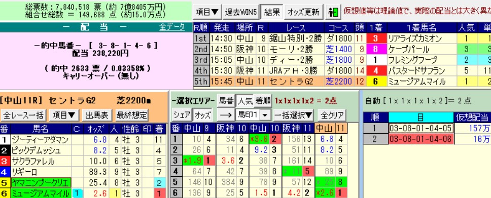 最後はミュージアムマイルというか戸崎圭太次第って感じだったが、負けない競馬をしっかりして勝利。参考までに紹介すると、最後をヤマニンブークリエが勝っていたら、200万近い配当となっていた可能性がある。