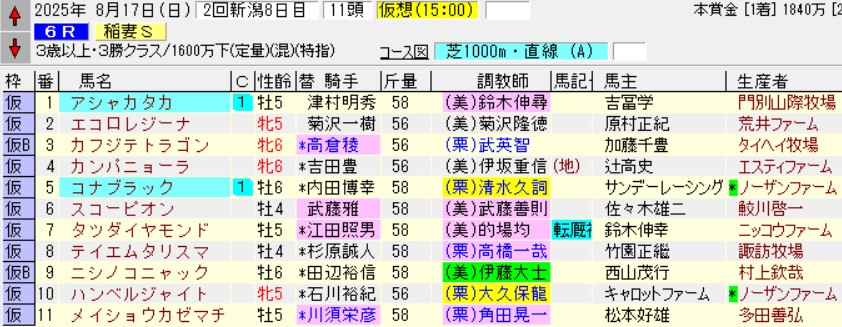 それでも最大限に警戒しなければならないのは、千直最強の職人・菊沢一樹の存在。極論をいえば一樹君が1番人気馬に騎乗するようなら1点でいいくらいの成績である。
