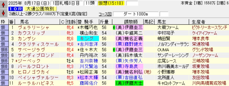 大通公園特別は以前からあるレースだが、今年は謎のダ1000m条件に変更。これは割とマジで意味が分からないぞJRA(笑)