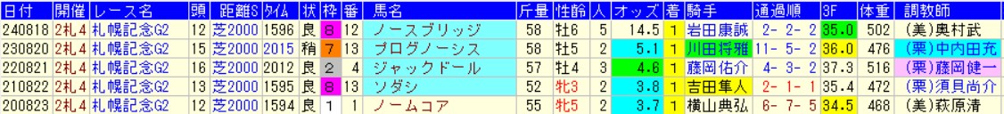 札幌記念週のWIN5過去5年