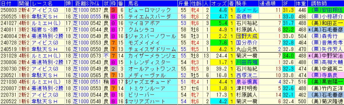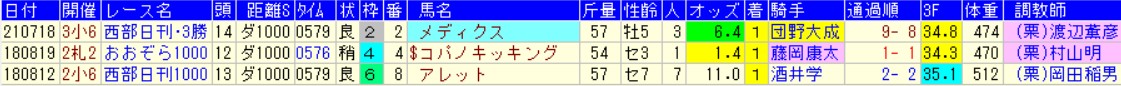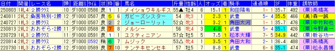 で、抜き出したのは近年の札幌で行われた2勝クラスのダ1000m。