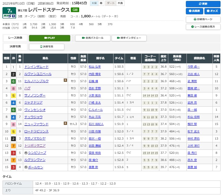 また、データ的な側面で話をすると、今夏のWIN5ダートは4番人気と5番人気がやたらと勝つ。レパードSにしても予想なんかせずに、大人しく4,5番人気の2点で済ませてしまえばよかったのかもしれない。