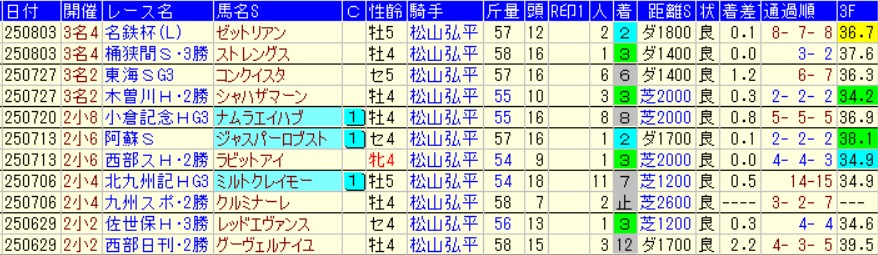 またWIN5専門の人間として注目したのは、今夏の対象レースで松山君が未勝利だったことである。騎乗馬の質も悪くない中で惜敗続きで勝てないレースも多かった。