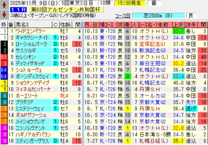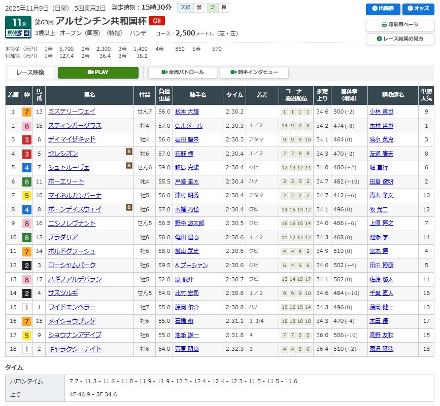 東京11Rアルゼンチン共和国杯(G2)芝2500