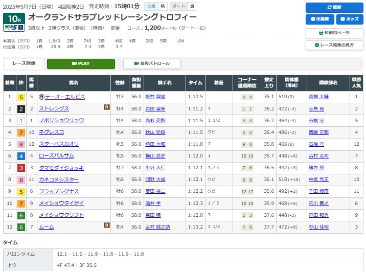 阪神10RオークランドTRT(3勝)ダ1200