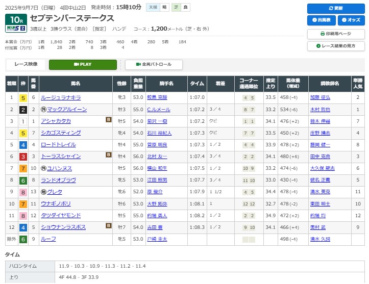 中山10RセプテンバーS(3勝)芝1200