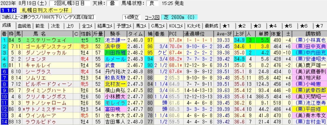 札幌11R丹頂S(OP)芝2600