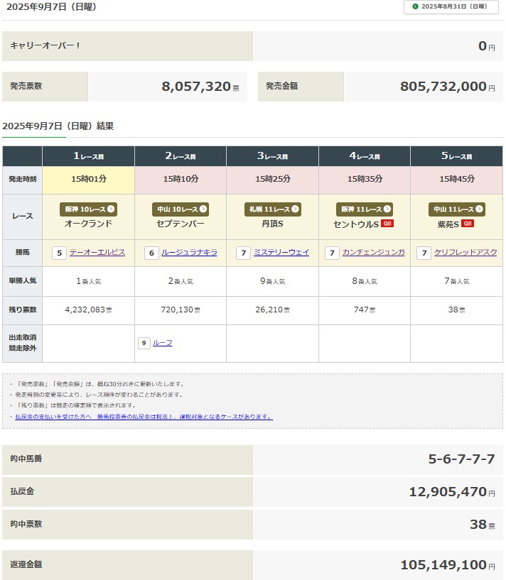 そりゃあ単勝1.3倍の馬が楽勝したことを予想通りと自画自賛しても大袈裟だけど、これが普通の馬券ならともかくWIN5では別物。1点勝負に成功すれば実質WIN4で済ませることが可能なのだから、ドキドキもワクワクも段違いなのだ。