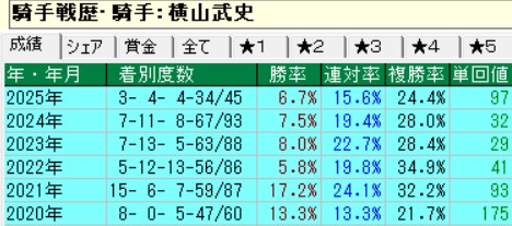 その一方、マピュースを買うつもりにならなかった最大の理由は横山武史である。ダービーで祐一君やダミアン君にけちょんけちょんに負かされ、エフフォーリアの凋落とともに存在感は減るばかり。好調時の積極性も失われて、近年は戸崎圭太ちゃんより酷かった。