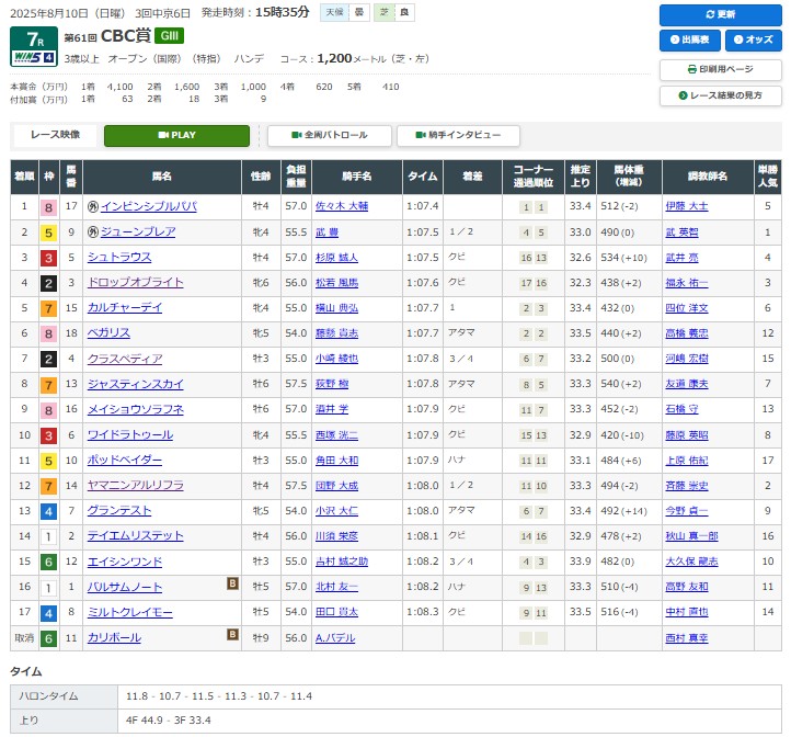前残り馬場なら例年通り逃げ馬が勝てるパターンのCBC賞。それで逃げる可能性のあったインビンシブルパパを割り引いたのは痛恨のミスだったと反省するしかない。