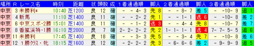 あとは差し馬場っぽいと感じていた中京の馬場が、いつも通りの前残りにシフトしつつあったことも大きい。土曜中京はあまりチェックしていなかったのだが、こうして確認するとほぼ完全に前残り馬場となっていた様子。前に行きすぎてもゴール前で交わされるパターンを警戒していただけに、こちらの完全な確認漏れである。