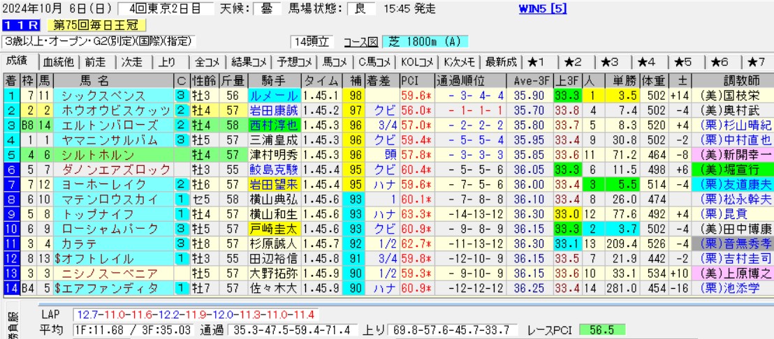 そんなことより毎日王冠の予想だね。参考レースは以下の3つ。