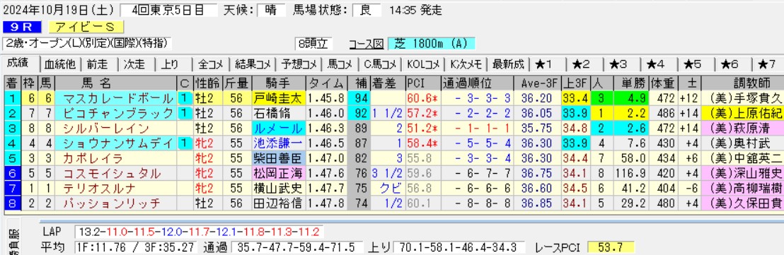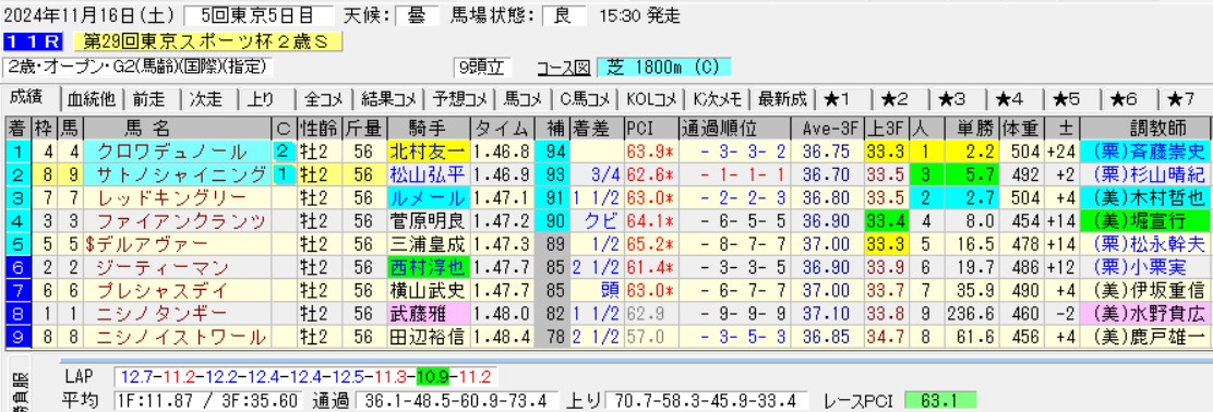 それはともかく今年の毎日王冠も、下馬評通りなら1番人気濃厚のサトノシャイニングで堅そうに思えるが、おじさんは当時から24キロ増で遊んだクロワデュノールが強かっただけの東京スポーツ杯2歳S(G2)よりも、走破時計が1秒1も速かったアイビーS(L)の方を高く評価していたクチ。