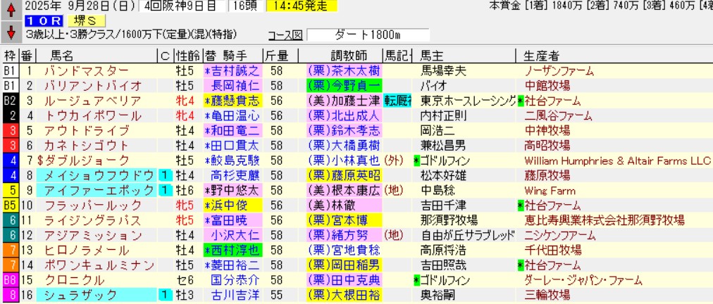 阪神10R堺S(3勝)ダ1800