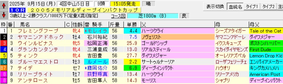 中山10R2005メモリアルイヤーディープインパクトC(2勝)芝1800