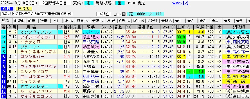 それでもルメールは薄氷でも勝ち切って、何とかしてしまった訳だけど重馬場のクソスローで積極策を採らずに下げている騎手は残念過ぎるよね。それ以前になんで33秒台が出てるんだよ新潟とも言いたい。