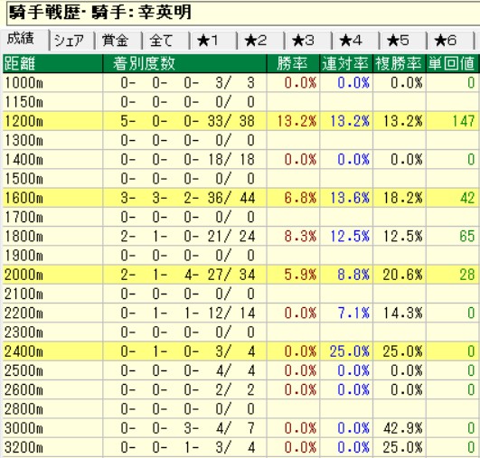 これに近3年のWIN5における芝1200mの成績を加味する。