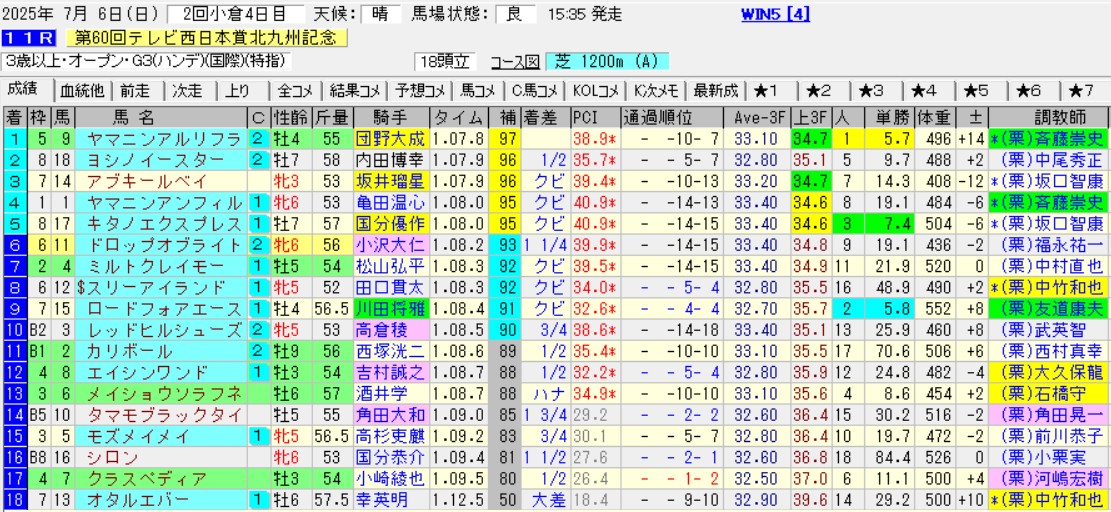 本馬と同じく北九州記念(G3)を経由した組については、勝ち馬のヤマニンアルリフラ以外は割り引いてよさそう。