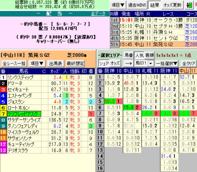 普通に考えてしょっちゅう万馬券を的中したり、穴馬を狙い撃って高額配当を手にするような連中でさえ、たかが数万で億超えのWIN5なんてまず当たるものではない。5レース中の1レースだけなどなら可能でも、資金配分や点数調整も伴う5レース全部で成功させるミッションはほぼ不可能といっていいだろう。