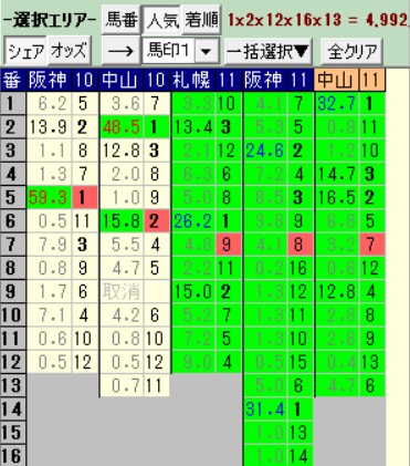 そして前半2レースが平穏決着した一方、後ろの3レースは波乱続き。勝ち馬のシェアを確認してみると4.8%、4.1%、3.2%と高配トリガー確定フラグが立っていた。